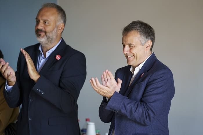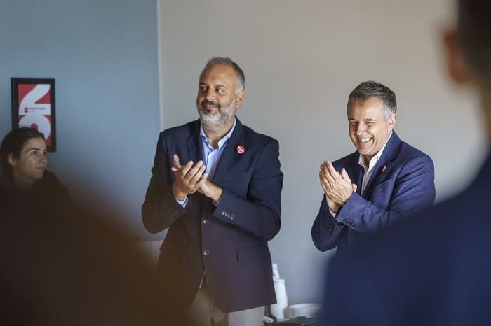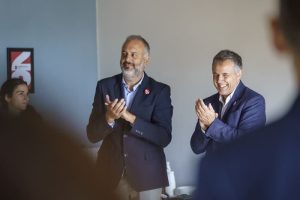 Accanto a lui non potevano mancare il sindaco di Mirandola Alberto Greco e i due Coworking manager di Cowo Mirandola Marco Maini e Stefano Volponi.